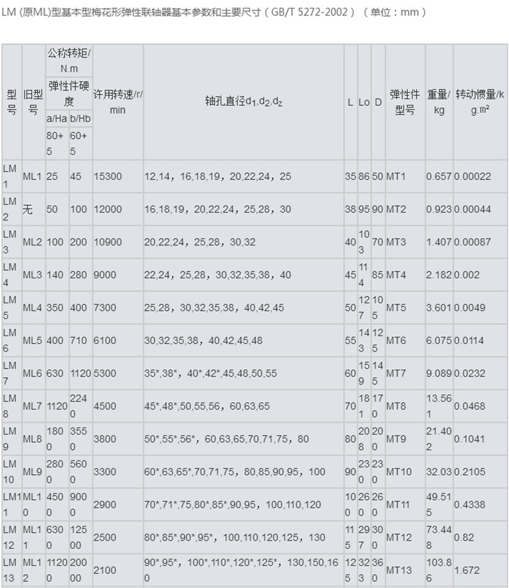 LM系列梅花形弹性联轴器的适用范围和性能特点